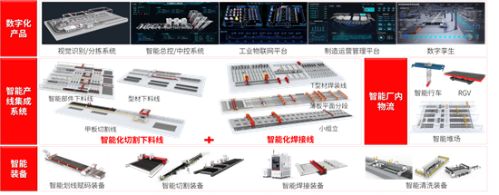近年來(lái),面對(duì)船舶工業(yè)轉(zhuǎn)型升級(jí)的趨勢(shì),華工科技直擊船舶行業(yè)痛點(diǎn),自主研發(fā)了高端激光切割裝備、板件賦碼裝備、激光復(fù)合焊裝備和行業(yè)數(shù)字化產(chǎn)品,并以自主裝備+自主軟件為核心,根據(jù)船舶制造企業(yè)個(gè)性化需求為其打造客制化方案,包含部件切割線、甲板切割線、型材切割線、薄板平面片體生產(chǎn)線、小組立生產(chǎn)線、T型材生產(chǎn)線等多種產(chǎn)線,并結(jié)合公司自主研發(fā)的基于AI算法的3D視覺識(shí)別分揀控制系統(tǒng)、智能總控/中控系統(tǒng)、數(shù)字孿生系統(tǒng)、工業(yè)物聯(lián)網(wǎng)平臺(tái)、制造運(yùn)營(yíng)管理系統(tǒng)等數(shù)字化產(chǎn)品打通生產(chǎn)全流程的數(shù)據(jù)和業(yè)務(wù),將各種船體結(jié)構(gòu)部件生產(chǎn)流程的局部效率提升轉(zhuǎn)變?yōu)檎w生產(chǎn)過(guò)程的協(xié)同和優(yōu)化,攜手船舶企業(yè)共塑新質(zhì)生產(chǎn)力。