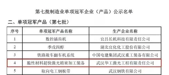 此前,華工科技旗下兩家核心子公司——華工高理和華工激光,分別于2021年和2022年憑NTC熱敏電阻器、脆性材料超快激光精密加工裝備獲工信部頒發(fā)的國家級制造業(yè)單項冠軍殊榮。