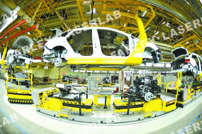 上海通用汽車武漢分公司的新工廠配備了先進(jìn)水平的工藝設(shè)備及高標(biāo)準(zhǔn)環(huán)保設(shè)施,僅車身車間即擁有452臺機器人,自動化率高達(dá)97%。