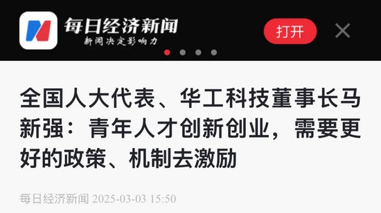 “青年人才的引進(jìn)和培養(yǎng)一直是我關(guān)注的重點(diǎn),青年人才的數(shù)量和質(zhì)量關(guān)乎科技創(chuàng)新的未來(lái)?!?月28日,全國(guó)人大代表,華工科技黨委書記、董事長(zhǎng)馬新強(qiáng)在接受《證券日?qǐng)?bào)》記者專訪時(shí)表示。他在2025年兩會(huì)期間將提交一份關(guān)于優(yōu)化政策、機(jī)制,激發(fā)青年人才創(chuàng)新創(chuàng)業(yè)動(dòng)能的建議。包括要完善分層分類的評(píng)價(jià)體系;系統(tǒng)優(yōu)化青年人才培養(yǎng)、支持計(jì)劃;加強(qiáng)青年人才培養(yǎng)、支持的區(qū)域競(jìng)爭(zhēng)和協(xié)同,促進(jìn)資源流動(dòng)。