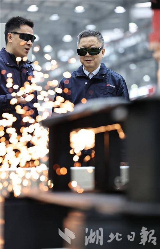 3月14日,陽春三月,春寒尚未完全褪去。在華工科技智能制造產(chǎn)業(yè)園葛店園區(qū)生產(chǎn)車間內(nèi),三維五軸激光切割機器臂正靈動揮舞。隨著一道道弧線劃過,鋼花四濺,仿佛一場科技與工業(yè)碰撞的絢麗煙火秀。華工科技董事長馬新強身著藍(lán)色工裝,專注地站在機器旁,眼神緊緊跟隨機器臂的每一次動作,不時與身旁的工程師低聲討論著算法優(yōu)化。