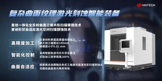 采用納秒/超快光纖激光器和高速共形掃描刻蝕頭,配備智能多軸加工軟件,最大加工幅面達140mm,精細度小于0.01mm,賦能千行百業(yè),為復雜零部件紋理雕刻“保駕護航”,推動從納米紋理到千億市場的精密制造革命。