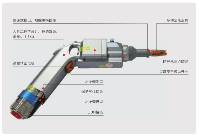 ● 內(nèi)部設(shè)計靈巧,良好的交互控制系統(tǒng),擴大了加工部件公差范圍及焊縫寬度,解決了光斑細小的劣勢,焊縫成形更好;