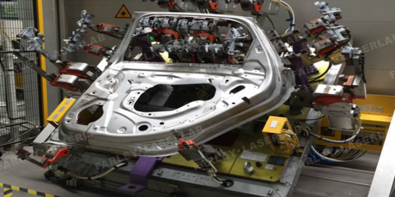面向汽車廠白車身連接工程領(lǐng)域,應用于鋼&鋁材質(zhì)的車門內(nèi)板和窗框加強板的連接工藝。其焊接法蘭翻邊更窄。因此,使用四門激光飛行焊工藝是解決車身輕量化的有效手段之一。