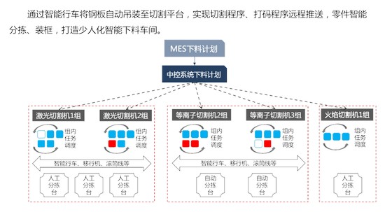 機械智能下料中控系統(tǒng)是一種集成化的智能控制系統(tǒng),主要用于優(yōu)化下料作業(yè)流程,提高生產(chǎn)效率和物料利用率。該系統(tǒng)通過與MES、ERP等外部系統(tǒng)集成,接收生產(chǎn)工單信息,實現(xiàn)物料出入庫的智能化管理。它能夠自動解析套料圖,精準(zhǔn)控制下料過程,支持自動分揀、輸送線控制和物流調(diào)度等功能。此外,系統(tǒng)還具備實時監(jiān)控和預(yù)警功能,利用圖像識別技術(shù)對下料過程進(jìn)行監(jiān)控,及時發(fā)現(xiàn)并處理異常情況。通過智能調(diào)度和優(yōu)化算法,該系統(tǒng)能夠顯著減少人工干預(yù),提升產(chǎn)能和材料利用率。
